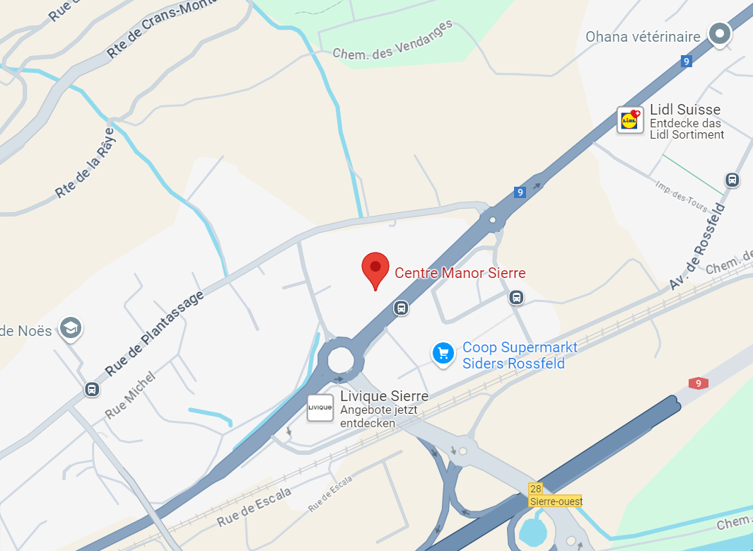 Orari di aperturaLunedì - Giovedì: 09:00 - 18:30Venerdì: 09:00 - 21:00Sabato: 08:00 - 17:00IndirizzoCentre ManorRue de Plantassage 243960 Sierre Google Maps