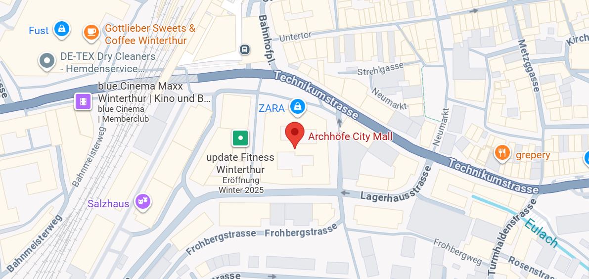 Orari di aperturaLunedì - Venerdì: 09:00 - 20:00Domenica: 09:00 - 18:00IndirizzoArchhöfe City MallArchplatz 28400 Winterthur Google Maps